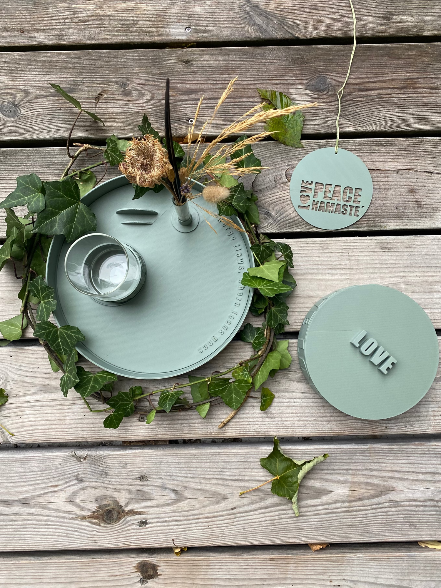 In sanften Salbei-Tönen präsentieren sich unsere Soul Bowls, Soul Light und Anhänger – harmonisch aufeinander abgestimmt im Einklang mit den Farben der Natur.